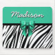 Blue Ribbon Bow Zebra Print Mouse Pad