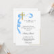 This sweet invitation design is perfect for your son's First Holy Communion. It is called Blue Ribbon with Gold Cross Communion and has a bright white background. In the upper left corner there is a blue ribbon graphic with a gold cross in the centre of the bow. In the lower right corner there is a coordinating gold partial border to highlight your text. Just change the text to personalise your invitation and you are all set! Great for any church service.