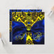 BLUE RIBBON GOLD YELLOW BLACK DAMASK MONOGRAM INVITATION