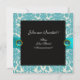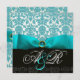 BLUE RIBBON TURQUASE WHITE BLACK DAMASK MONOGRAM INVITATION