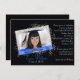 Photo frame with blue satin ribbon and glitter on black background for any year graduation. Personalise frame with your grad's photo.