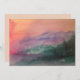 A serene watercolor mountain scene with pink skies. Beautiful greens and purple mountain ranges grace the page. Stationery and home decor items embrace its design.