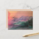 A serene watercolor mountain scene with pink skies. Beautiful greens and purple mountain ranges grace the page. Stationery and home decor items embrace its design.