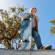 Waves of vibrant blue and aqua flow across the image, interspersed with shimmering gold accents. The colours swirl and blend, giving a sense of movement and elegance.