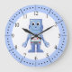 Smiling blue robot children illustration cartoon clock, blue and white robots clock for children room
