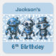 Blue Robot Theme 6th Birthday Invitation Square Sticker