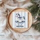 A sweet watercolor rocking horse takes centre stage in this charming baby shower design. Set against a softly striped blue background, this illustration evokes a classic nursery vibe with a festive winter twist, perfect for celebrating a little one's arrival.