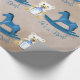 This sweet baby boy wrapping paper has a warm brown smokey rustic background. A wooden turquoise rocking horse is featured as well as a white and beige teddy bear with a baby bottle. Customisable text reads, "It's a Boy!". Great for baby shower or new baby gift or decoration.