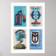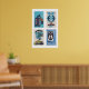 Blue Romanian Matchbox Labels Grid Print, Vintage Poster