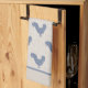 A Blue And Beige Rooster Patterned Kitchen Dish Towel