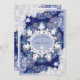 Snowflake with my drawing of a stained glass window from an old European church: a rose window, with touches of a wide variety of colours, including shades of blue, on a navy blue background. Inlay of light blue rhinestones (drawn). For an old times winter pattern. This motif is also available in cardinal red in my “cardinal red rosace” collections.