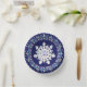 Snowflake with my drawing of a stained glass window from an old European church: a rose window, with touches of a wide variety of colours, including shades of blue, on a navy blue background. Inlay of light blue rhinestones (drawn). For an old times winter pattern. This motif is also available in cardinal red in my “cardinal red rosace” collections.