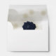 Here is a simple and elegant envelope with beautiful blue roses on a bed of blue confetti and a soft golden glow. Perfect for a more whimsical, fun event. This design gives the envelope an overall “light and airy” or minimalistic touch.
