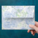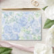 A fresh and airy personalized envelope featuring hand-painted indigo roses and green eucalyptus leaves. The crisp white background makes the watercolor details pop, while the back flap offers space for your custom return address in a graceful script. Ideal for summer weddings, coastal events, or elegant personal stationery.