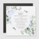 Blue Rose Floral Eucalyptus 100th Birthday Party Magnetic Invitation