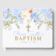 The lovely blue rose garden flowers adorn the cover of this dainty baptism guest book. Accented by a gold faux glitter cross and block lettering. Perfect for a Baptism reception.