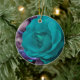 Aqua blue tinted rose in full bloom with lingering raindrops flower ornament. Flower photography by Susan. Click on Customise to add your personal message on the back. If you would like the image on the back of the ornament as well, please contact me and I will be happy to create it for you. If you need help or have any requests, please contact me through Send Message on my homepage. This image is available on many products in my gallery.