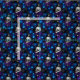 Gray and white skulls, blue and purple roses with silver leaves, on a black background makes a beautifully Gothic fabric. Perfect for clothing, household goods, and crafts.
