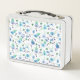 This is a standard metal lunchbox that appears to work just fine. We designed this box ourselves with an uploaded photo and custom text on the front and back. It looks absolutely beautiful except the front of the lunchbox is not centered like it shows in the photo. The print borders don't align with the inset flat part of the box where the preview photo online showed it perfectly centered in there. The back looks nice and centered though.