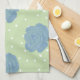 Blue rose pattern on green backround tea towel