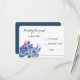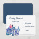 This RSVP card features a bouquet image of blue roses, with a complementary pink violet flower, and blue, and aqua leaves. Your custom text is in matching blue. The image and text are placed on a white background. The back of the card is matching blue. Be sure to see the matching wedding products, including invitations, in our store.