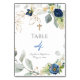 Blue roses boy Baptism Table Number
