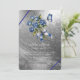 Blue Roses Butterfly Silver Bridal Shower Invitation