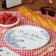 We thought this was such a clever plate and perfect for our anniversary party that was on a boat. we used this plates for the cake and carried the cute theme out on the custom cake
