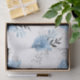 This design showcases light blue roses with charcoal grey and blue leaves on a white background. Perfect for decoupage artwork, paper crafts, or gift wrap.
