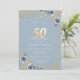 Blue Roses String Lights Dusty Blue 50th Birthday Invitation