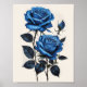 Blue Roses watercolor botanical print. Ai assisted and Adobe Photoshop finished. Beautiful Blue roses composition reminiscent of old botanical prints, monochrome. Digital art, Wall art.