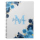 Blue Roses With Gold Glitter Script Monogrammed Notebook