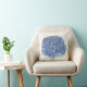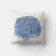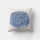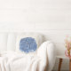 Single Blue Round Hydrangea Cluster on a fresh white faux linen-textured decorative pillow.