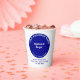 Customisable paper cup for your cafe business. You can put your business name on it. Customise it and use it like a marketing material to advertise your business or to promote your brand name. Build brand name awareness while your customers enjoy sipping the tasty and aromatic coffee that you served to them. Design and colours on the paper cup are light blue texts on blue round shape background and blue colour business address and phone number texts. Contents are your business logo, business or company name, city or town, state, address and phone number.