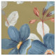 Blue and rust/burnt orange watercolor flowers on olive green botanical autumn/fall fabric.