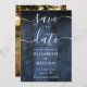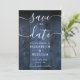 This elegant blue rustic barn wood boho wedding save-the-date card can be personalised with your information in chic typography and a special photo on the reverse. Designed by Thisisnotme©