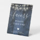 Blue Rustic Barn Wood String Lights Favours Pedestal Sign