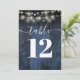 These blue rustic barn wood string lights boho table numbers are perfect for all celebrations. Designed by Thisisnotme©