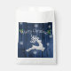 Add a dash of woodland charm to your celebration with this festive holiday Blue Rustic Christmas Reindeer Party Favour Bag, featuring a leaping jumping reindeer surrounded by white snowflakes and falling snow over a cosy rustic wood background. The cheerful Merry Christmas message is displayed in bold festive typography, perfectly tying together your rustic reindeer party theme.