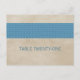 Elegant and chic Rustic Damask Wedding Table Number Postcard featuring a vintage textured paper look background and a flourish damask pattern border in blue. Easy to customise, simply add the appropriate table number(s) in the text field provided. Click "Customise It" to find more personalisation options.
