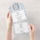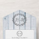 Invite guests to your upcoming wedding with a Blue Rustic Monogram All in One Wedding Invite. Invite design features a rustic wooden background with a simple elegant wreath you can add your monograms. Personalise with the groom and bride's names along with the wedding date and location. Additional wedding stationery available with this design as well.
