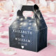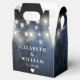 These blue string lights rustic wood boho barn wedding favour boxes can be personalised with your information in chic typography. Designed by Thisisnotme©