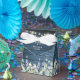 A rustic wedding favour box featuring delicate sage and lilac watercolor leaves, string lights and mason jars on a blue wood panels background. You can personalise with your own thank you message on the reverse. A perfect way to say thank you to your guests! Designed by Thisisnotme©