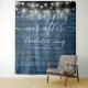Featuring pretty string lights and chic typography script on a blue wood panel background, this rustic wedding photo booth backdrop can be personalised with your names and special date. Designed by Thisisnotme©