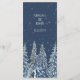 A beautiful menu for your rustic winter wedding table with a snow covered night forest in dark blue and white. Customizable with your dinner details, available in a wide range of matching wedding products.