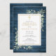 Blue Rustic Wood Greenery First Holy Communion Invitation