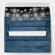 A stylish rustic envelope featuring pretty string lights, mason jars, signature style names and chic typography on a blue rustic wood background. Designed by Thisisnotme©