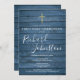 Blue Rustic Wood Script First Holy Communion Invitation