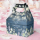 A rustic wedding favour box featuring delicate sage and lilac watercolor leaves and pretty string lights on a blue wood panels background. You can personalise with your own thank you message on the reverse. A perfect way to say thank you to your guests! Designed by Thisisnotme©
