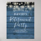 Featuring string lights on a blue rustic wood panels background, this stylish retirement party welcome sign can be personalised with your special event information. Designed by Thisisnotme©